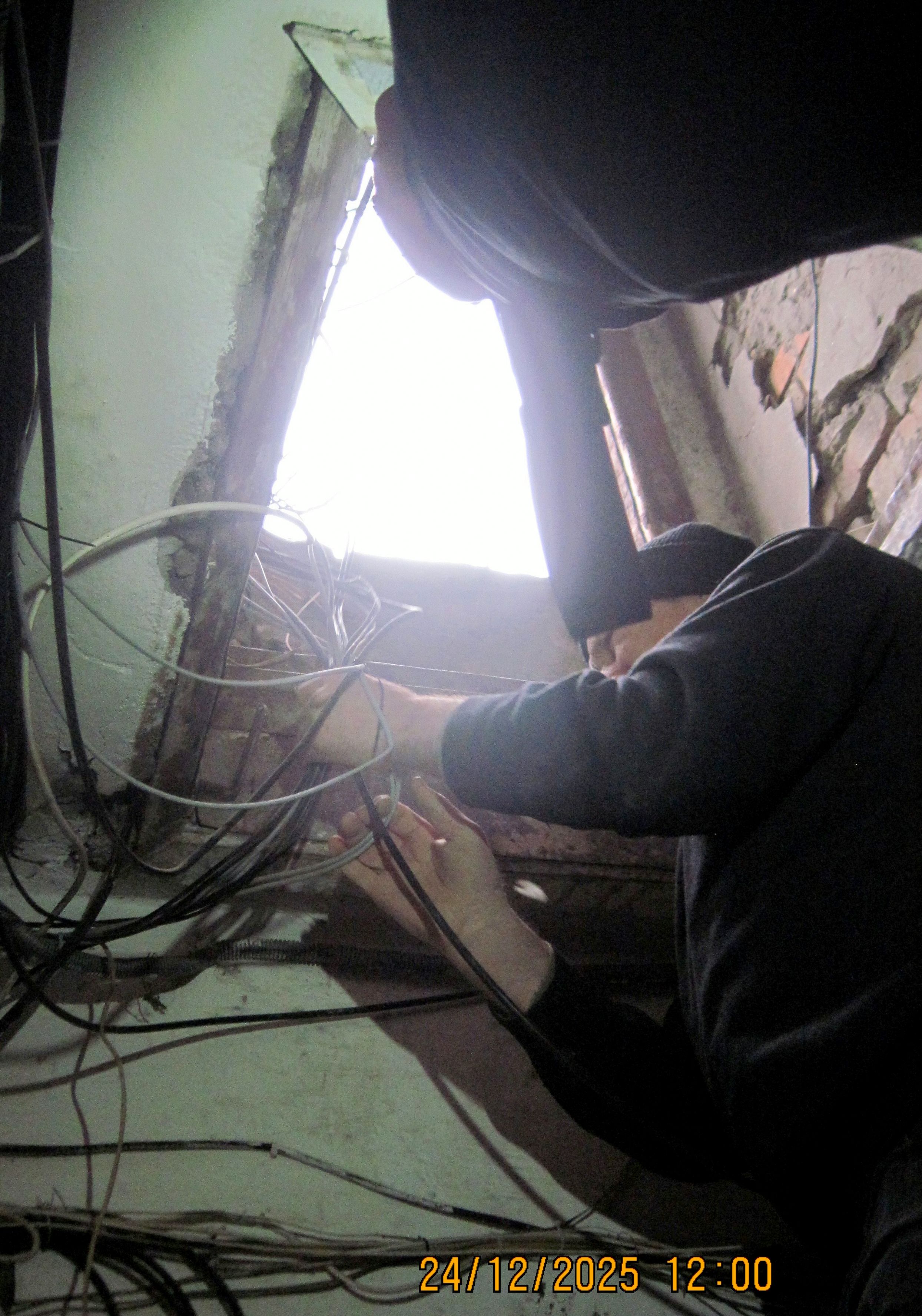За підсумками наради, у присутності начальника дільниці 3/2 та електрика КК «Клевер», проведено демонтаж безгосподарних пошкоджених мереж ЕКП на даху в житловому будинку.