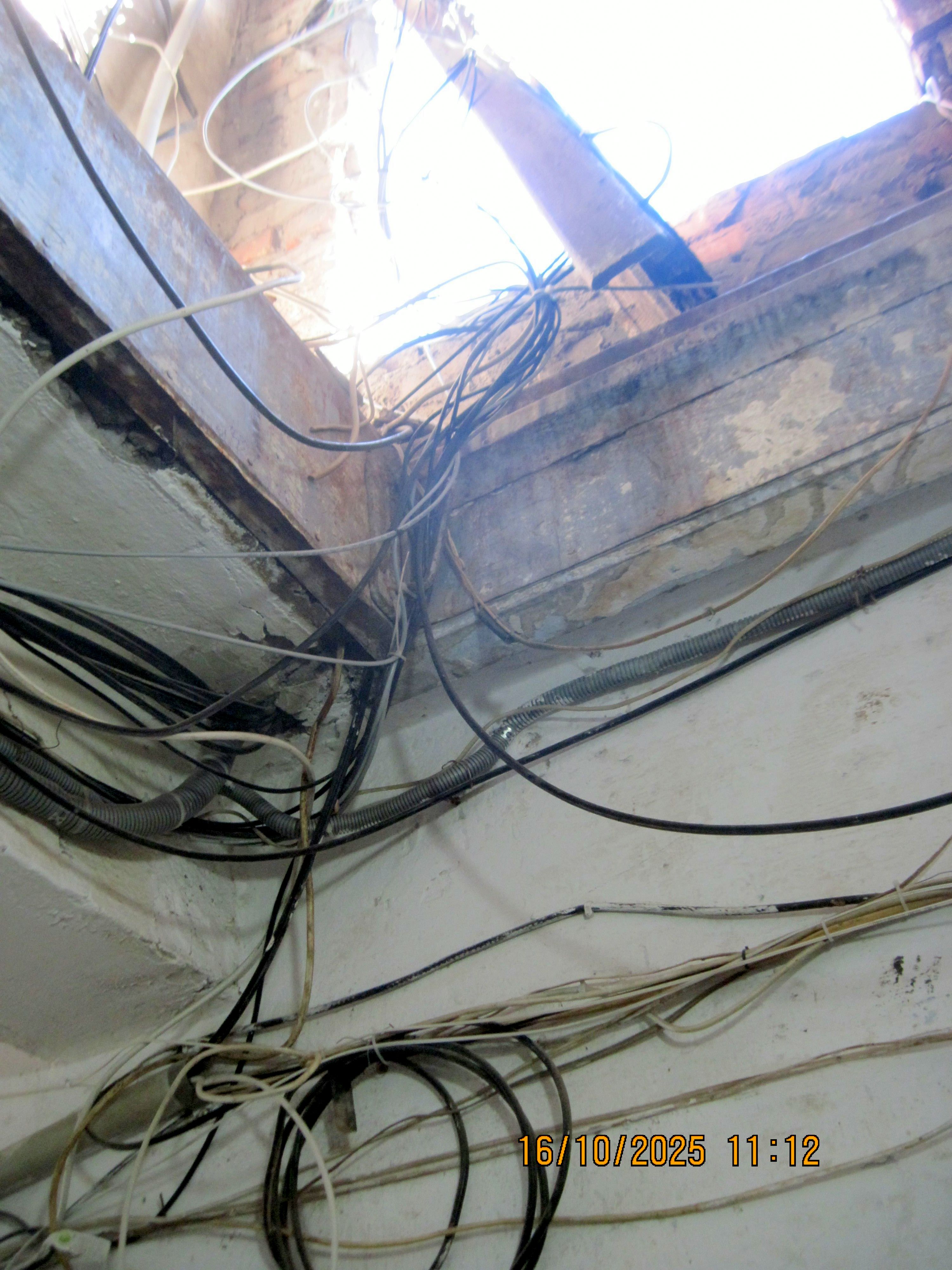 За зверненням КК «Клевер» проведено перевірку наявності недіючих мереж та обладнання, яке більше не експлуатується, при виході на дах у житловому будинку. За результатами обстеження виявлено хаотично прокладені мережі крізь вихід на дах, які не дають змогу встановити двері та новий люк.